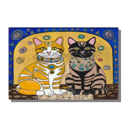 Mixed Media Art: Two Cats and Klimt Inspiration
